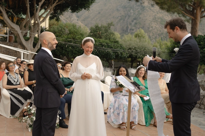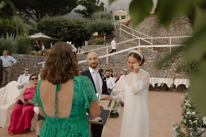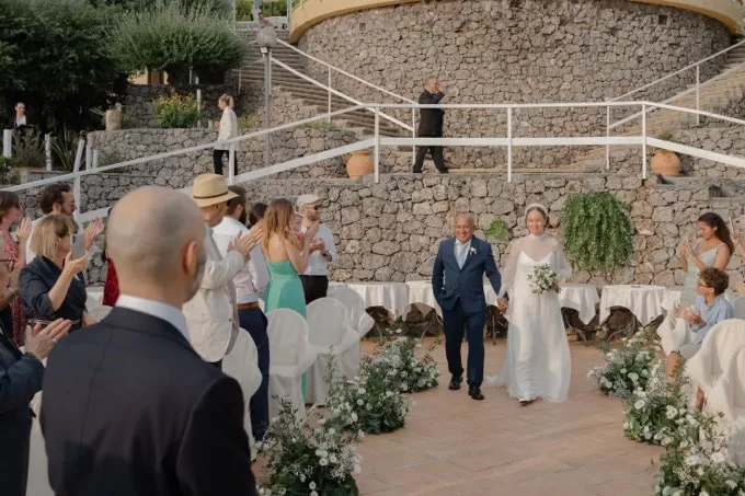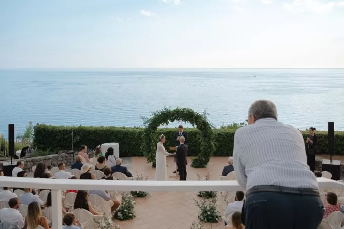 Il matrimonio è stato un susseguirsi di emozioni, dalla prima occhiata allo scambio delle promesse sotto il cielo azzurro della costa.